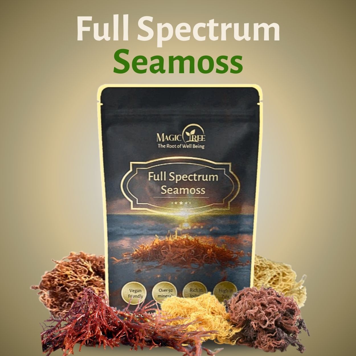 Sea Moss is a mineral-rich seaweed (usually Chondrus crispus or Gracilaria) found in the Atlantic and Caribbean waters. It's known for containing 92 of the 102 minerals your body needs, including iodine, zinc, magnesium, and iron.
